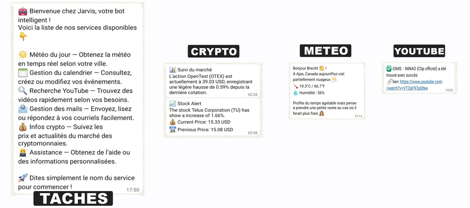Cet agent IA gère les e-mails, organise l’emploi du temps, effectue des recherches sur YouTube, fournit les prévisions météo, et affiche les informations sur les cryptomonnaies en temps réel.